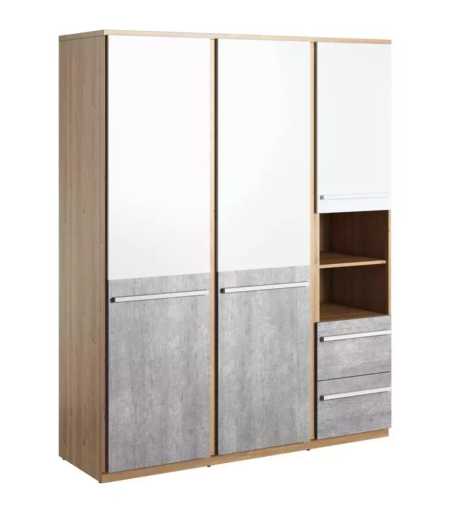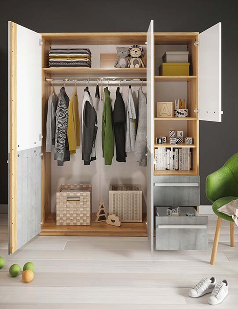 PLANO-mallisto on täydellinen tarjous niille, jotka pitävät valoisista ja yleiskäyttöisistä huonekaluista, jotka voidaan yhdistää erilaisiin lisävarusteisiin ja lisäosiin. Valkoisen, harmaan ja puun klassinen yhdistelmä antaa PLANO-huonekaluille ainutlaatuisen luonteen. PLANO-huonekalut sopivat mihin tahansa huoneeseen - sekä aikuiset että lapset arvostavat niiden muotoilua. Sarjaan kuuluu kaksi erikokoista sänkyä - 120 cm ja 90 cm leveät, jotka voidaan varustaa liinavaatesäiliöllä. Tilava kolmiovinen vaatekaappi ja klassinen kaksiovinen vaatekaappi tarjoavat runsaasti tilaa kaikille vaatteillesi. Mukavan työskentelytilan voi järjestää käyttämällä erillistä paikkaa oppimateriaalien säilyttämistä varten, kirjahyllyä ja pöydän päälle ripustettavaa ripustuskaappia. PLANO-vaatekaapin kahden oven takana on tangot henkareita varten ja kolmannen oven takana on kaksi hyllyä. Vaatekaapissa on myös kaksi avohyllyä ja kaksi laatikkoa. Vaatekaappi on suuri ja siinä on tilaa monille vaatteille ja pienille tavaroille.