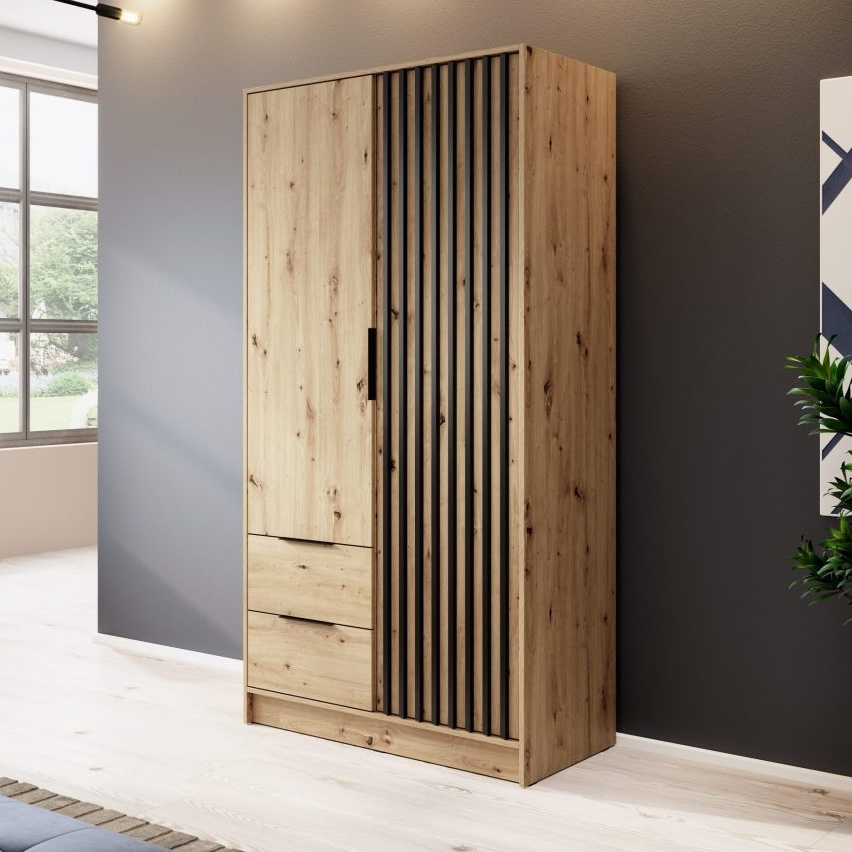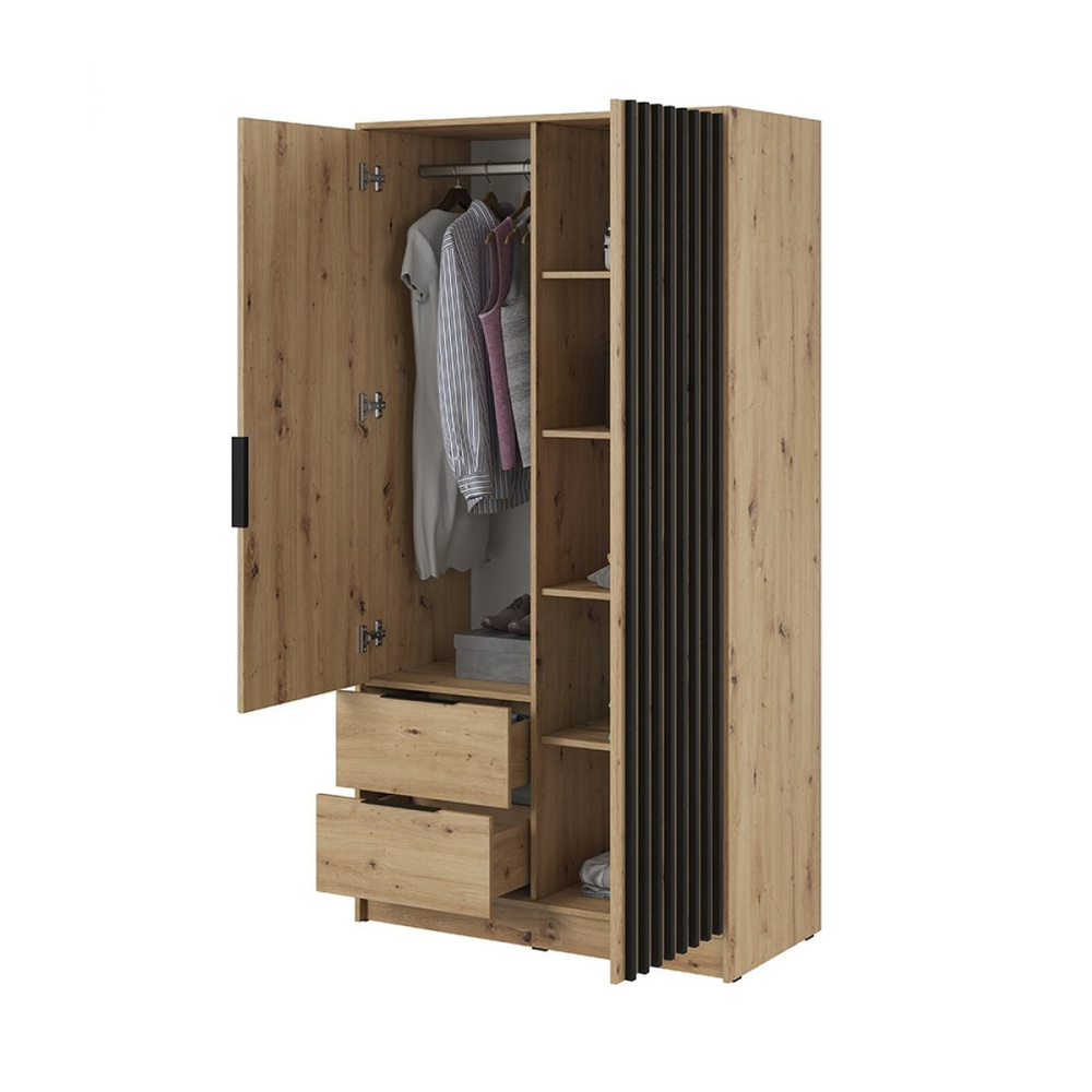 Nelly on vaatekaappi, jossa on hyllyt ja tanko, suunniteltu sopimaan hyvin pieniinkin huoneisiin. Moderni ja erittäin käytännöllinen vaatekaappi suositellaan erityisesti eteiseen, makuuhuoneeseen tai vaatehuoneeseen. Ainutlaatuisen ulkonäön, etupuolen koristeellisten säleiden ja muodikkaan väriyhdistelmän ansiosta vaatekaappi sopii täydellisesti moderniin sisustukseen sisäkaton sisustukseen. Leveys on 105 cm.