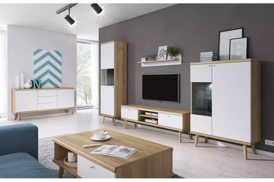 PRIMO-järjestelmä on ainutlaatuinen huonekalu, jolle on ominaista moderni muotoilu, vankka käsityötaito ja hyvä toimivuus. Ne on valmistettu laminoidusta lastulevystä. Pitkät puujalat lisäävät tyyliä ja eleganssia. Koko valikoimalle ovat ominaisia sen omaperäiset muodot, väriyhdistelmät ja käytännöllisyys, joten se sopii monenlaisiin tiloihin. Huonekalut sopivat hyvin olohuoneisiin ja makuuhuoneisiin. Lisäksi niitä voidaan käyttää toimistoissa, hotelleissa ja muissa tämäntyyppisissä paikoissa. Huonekalujen poikkeuksellisen mutta universaalin luonteen ansiosta ne sopivat eri tyyleillä sisustettuihin sisätiloihin. Mallisto on saatavana tammi Riviera / valkoinen. Tämän järjestelmän kalusteet on päällystetty ABS-reunuksella. LED-valaistus tekee huonekaluista entistäkin omaperäisempiä. Tämän järjestelmän suuri etu on myös puhdistamisen helppous ja lian näkymättömyys. Tämän ansiosta ne sopivat erinomaisesti myös koteihin ja asuntoihin, joissa on pieniä lapsia.
