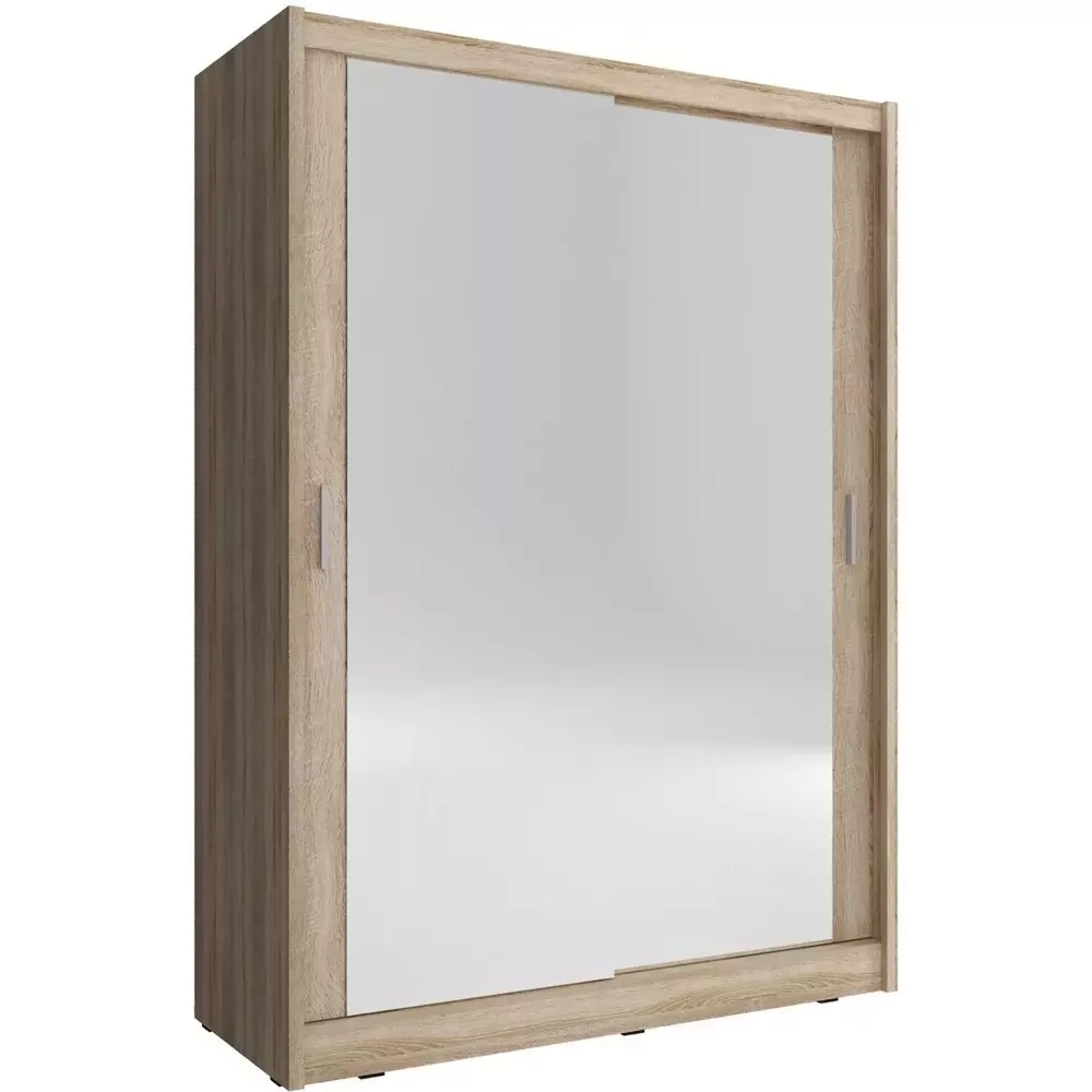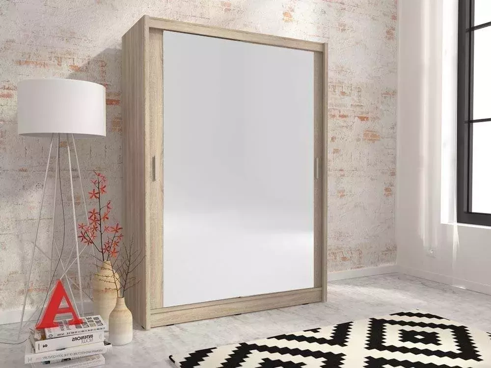 Liukuovellinen vaatekaappi 130 cm, jossa kaksinkertainen peili, tammi MAI