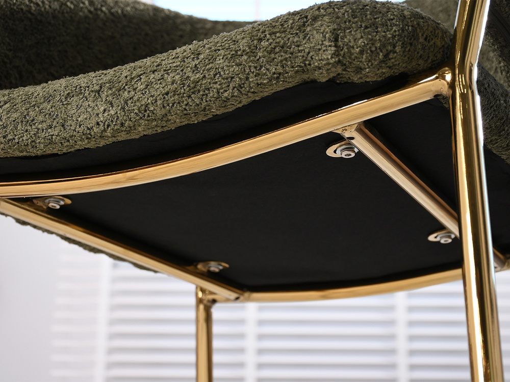- Perusväri: kulta - tuo tyylikkään ja ylellisen kosketuksen, joka sopii täydellisesti yhteen vihreän istuimen kanssa.