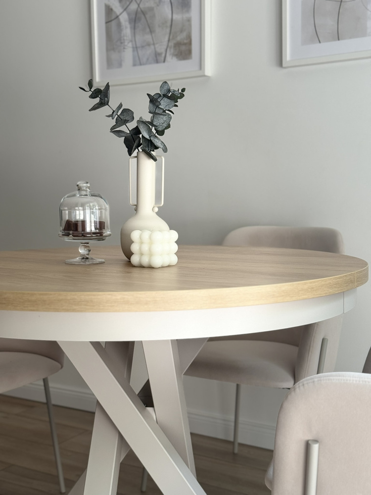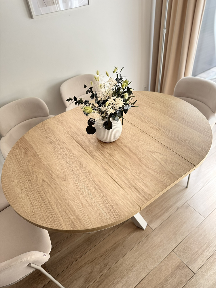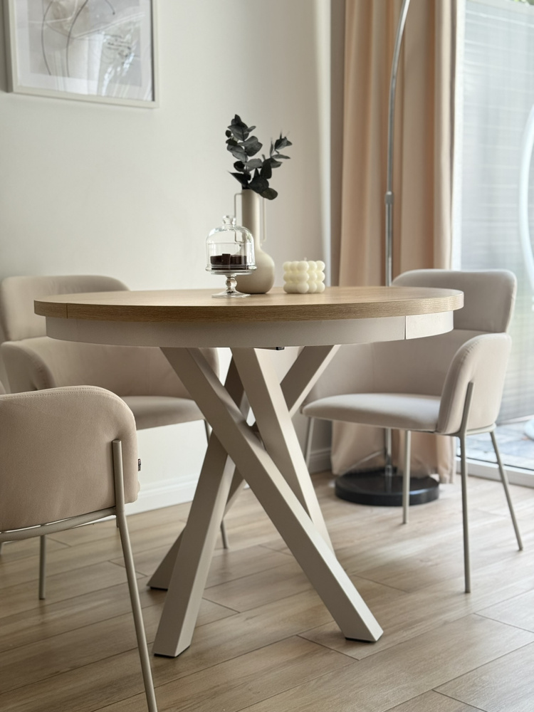 PASCAL on modern, ulosvedettävä pyöreä pöytä, 90–130 cm. Se on täydellinen yhdistelmä toiminnallisuutta, esteettisyyttä ja kestävyyttä. Se sopii täydellisesti keittiöön, ruokailuhuoneeseen ja jopa olohuoneeseen – kaikkialle, missä tyyli ja käytännölliset ratkaisut ovat tärkeitä.