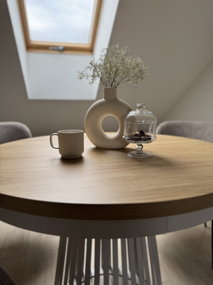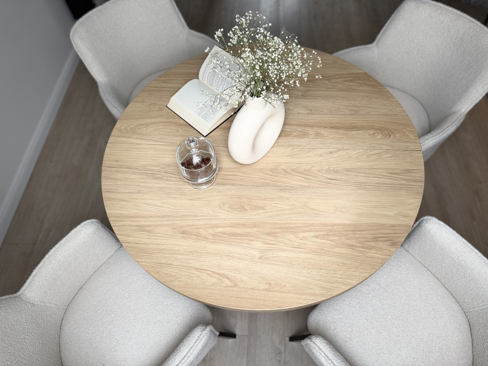 ALEXANDER on täydellinen ratkaisu keittiöön, ruokasaliin tai olohuoneeseen, jossa tapaat vieraasi kahvin tai illallisen merkeissä. Pyöreä pöytä on kaikin puolin harkittu tuote. Pöydän halkaisija on 120 cm ja se on valmistettu laminoidusta levystä, , ja se sopii täydellisesti 4 hengelle. Kompaktin kokonsa ansiostamusta pyöreä pöytä 4 hengelle ALEXANDER sopii erinomaisesti pieneen ruokasaliin, keittiöön tai olohuoneeseen. Lisäetuna on se, että voit helposti ja muutamassa minuutissa pidentää sitä 120 cm:stä 160 tai jopa 200 cm:iin kiinnittämällä siihen lisäkappaleet.