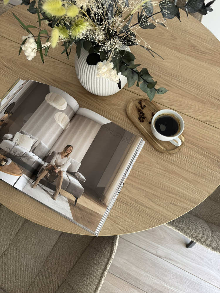 PASCAL-pieni tila pöytä yhdistää ajattoman ulkonäön ja modernit yksityiskohdat. Puuta muistuttava pöytälevy ja mustaksi jauhemaalattu jalka antavat pöydälle luonnetta ja mahdollistavat ainutlaatuisten sommitelmien luomisen loft-, modern classic-, japandi- tai industrial-tyylisissä tiloissa. Tämä huonekalu on sisustuksen keskipiste ilman, että se dominoi tilaa.